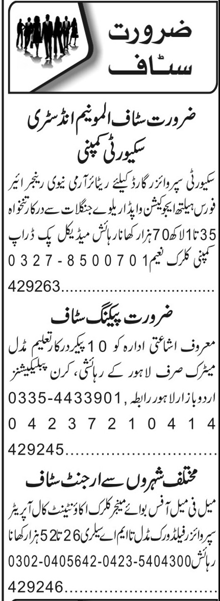 Private Company Multan, lahore Punjab Pakistan invites applications from eligible candidates for the post of security guard, supervisor, clerk, manager, call operator, accountant, packing staff, field worker, packer, office boy, security supervisor guard, security staff and security supervisor as per advertisement of March 14, 2024 published in daily Roznama 92 News Newspaper. Educational qualifications required Matric, BA, B.com, Intermediate, Middle and Bachelor etc.