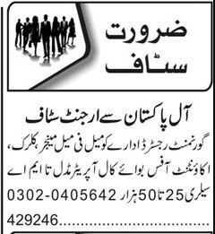 Apply as per details in job advertisement. Login to view further details of how to apply via https://www.jobz.pk online.
