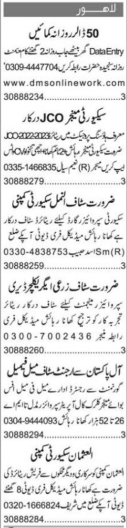 Private Company latest Classifieds Admin Clerical jobs and others can be applied till 22 August 2024 or as per closing date in newspaper ad. Read complete ad online to know how to apply on latest Private Company job opportunities. Some jobs in Private Company may require skills like Phone Support, Security, Management and Data Entry. On job accommodation, medical and food facility is provided.