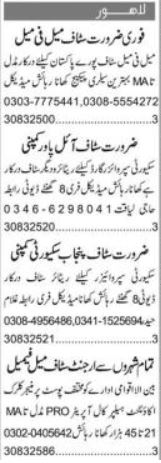 Private Company jobs advertisement dated about 29 October 2022 in daily Express Newspaper invites application for the vacant post of security supervisor, clerk, office staff, pro, manager, call operator, security guard, public relation officer, helper and accountant in Lahore, rawalpindi Punjab Pakistan. Preferred Education is Middle, Intermediate, Bachelor and Matric etc.