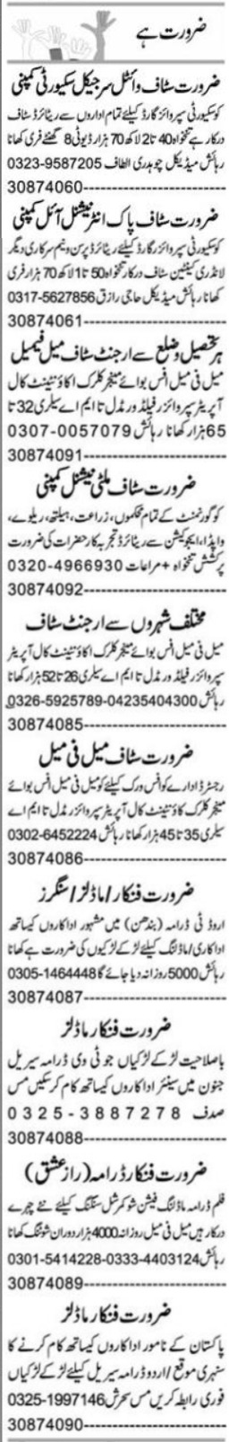 Latest Customer Service jobs and others Classifieds jobs in Private Company closing date is around April 28, 2024, see exact from ad. Read complete ad online to know how to apply on latest Private Company job opportunities. Field Sales, Security, Finance, Cooking, Driving and Accounting skills may beneficial for these Private Company jobs. Employer provides food, medical and accommodation facility.