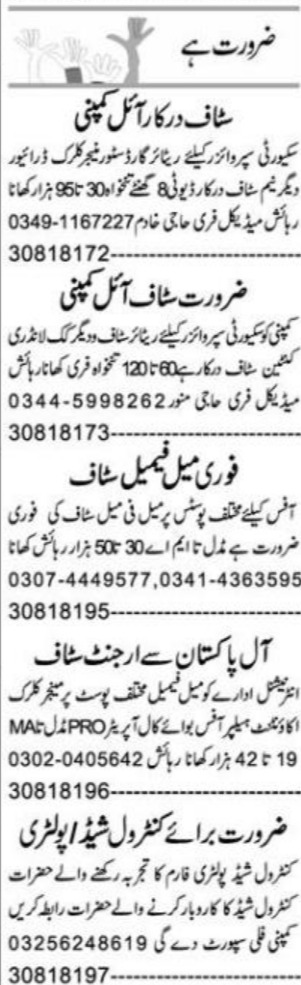 Private Company jobs advertisement dated about 7 June 2022 in daily Express Newspaper invites application for the vacant post of helper, accountant, security supervisor, manager, chef, cook, store manager, public relation officer, ltv driver, clerk, driver, security guard and call operator in Multan, multan Punjab Pakistan. Persons with Intermediate, Bachelor, Middle and Matric etc. education can apply.