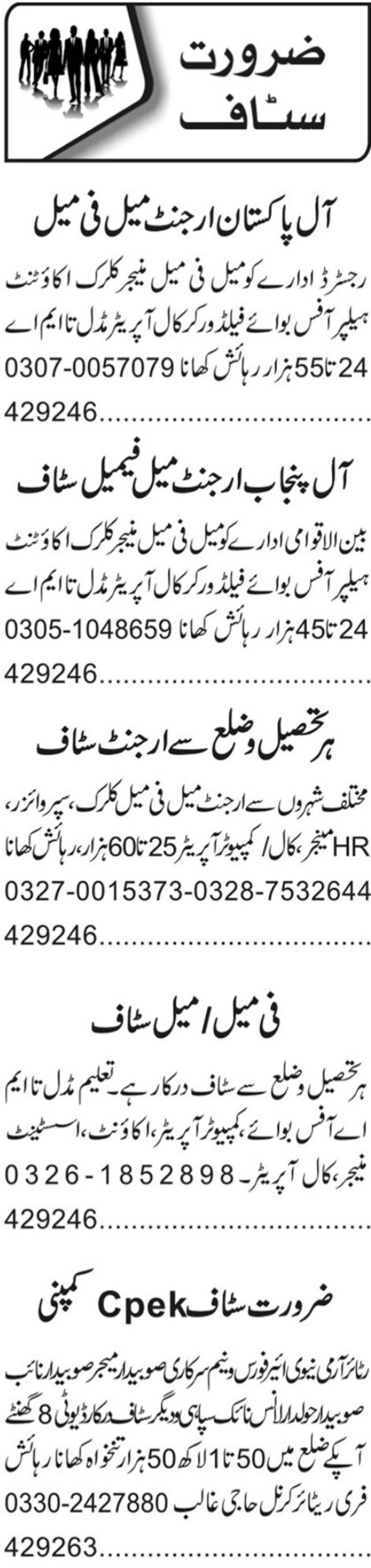 Private Company latest Classifieds Executive jobs and others can be applied till 10 September 2023 or as per closing date in newspaper ad. Read complete ad online to know how to apply on latest Private Company job opportunities. Learn today skills like Security, MS Office, Finance, Management, Human Resources, Computer Support, Accounting and Answering Telephones to apply confidently on these Private Company jobs. Facilities like food and accommodation may be provided.