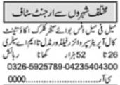Private Company Lahore, lahore Punjab Pakistan invites applications from eligible candidates for the post of accountant, call operator, manager, field worker, office boy, clerk and supervisor as per advertisement of February 17, 2024 published in daily Khabrain Newspaper. Matric, BA, MA, Middle, Intermediate, Bachelor and B.com etc. educational qualification will be preferred.