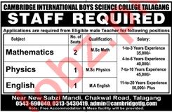 Latest Cambridge International Science College Teaching Posts Talagang 2025