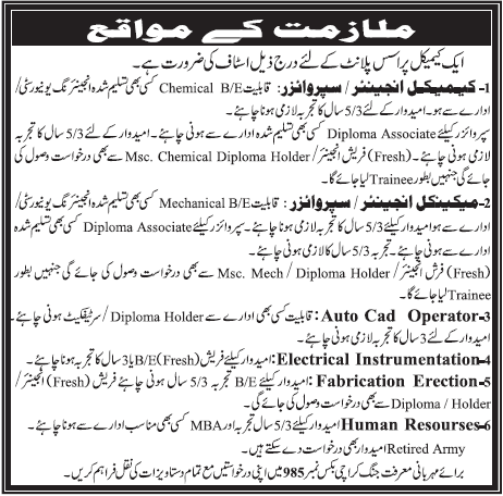 Apply as per details in job advertisement. Login to view further details of how to apply via https://www.jobz.pk online.