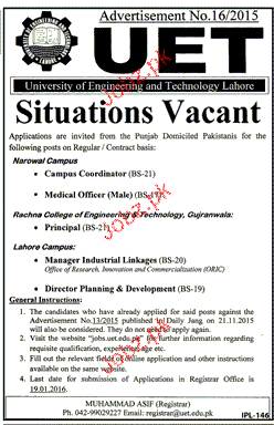 Campus Coordinators, Medical Officers Job In UET Lahore