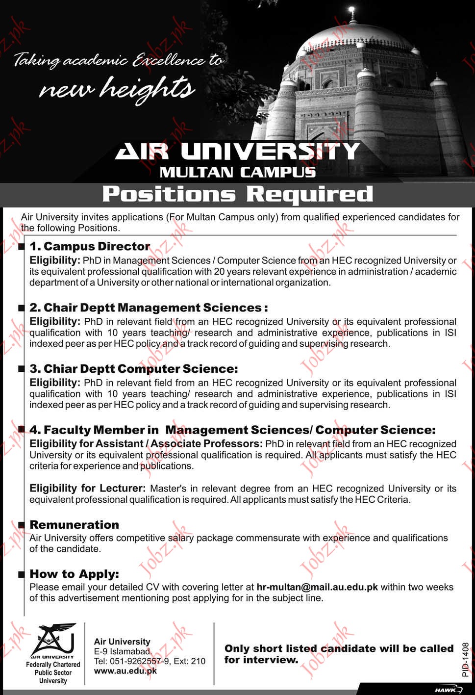 Apply as per details in job advertisement. Login to view further details of how to apply via https://www.jobz.pk online.