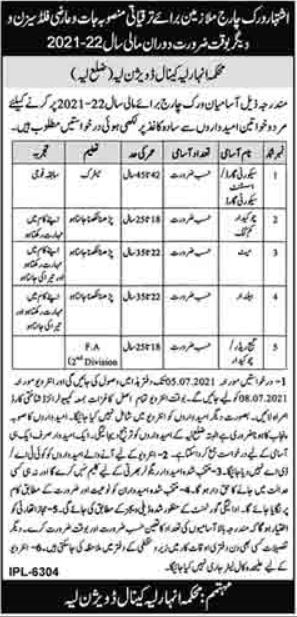 Canal Division Jobs For Non Miscellaneous Staff In Layyah