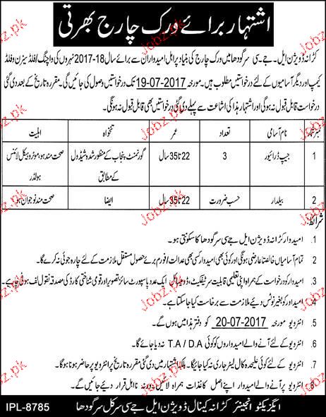 Canal Division LJC Circle Sargodha Jobs Open