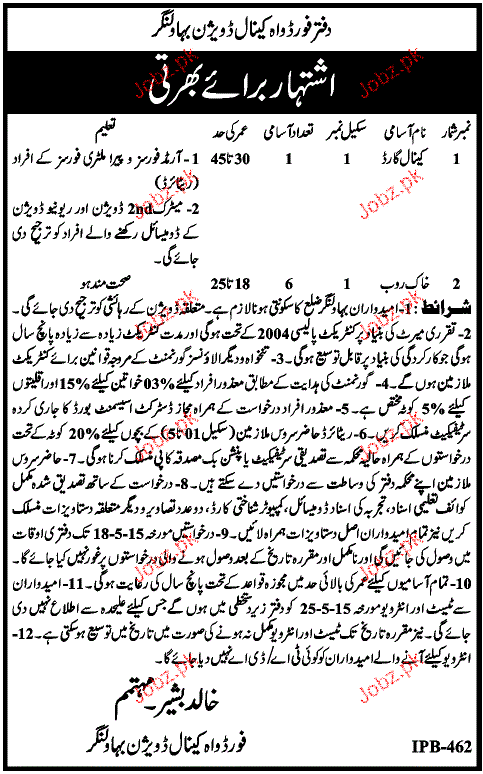 Apply as per details in job advertisement. Login to view further details of how to apply via https://www.jobz.pk online.