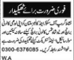 Apply as per details in job advertisement. Login to view further details of how to apply via https://www.jobz.pk online.
