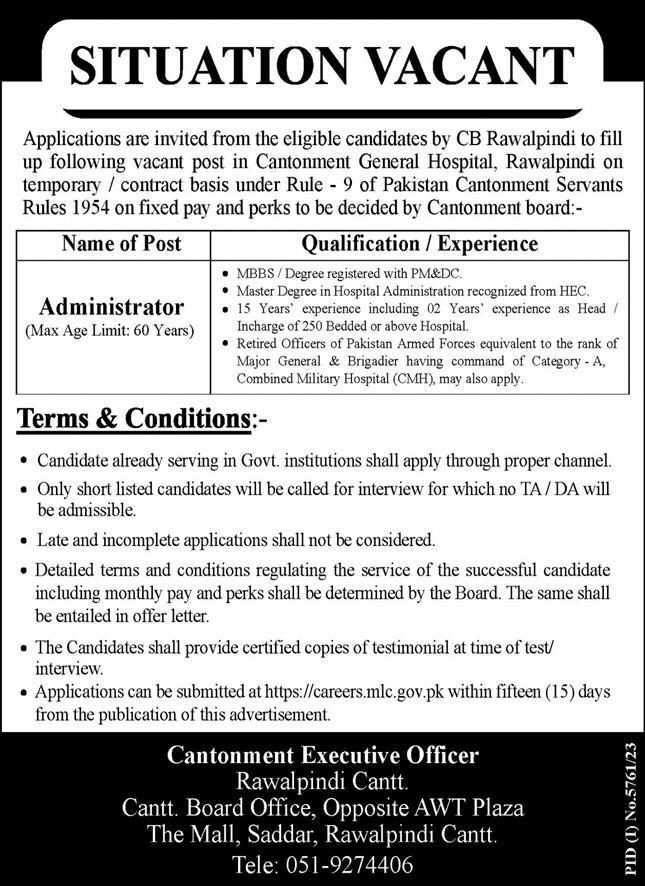 Cantonment Board CB Rawalpindi Jobs 2024 For Administrator