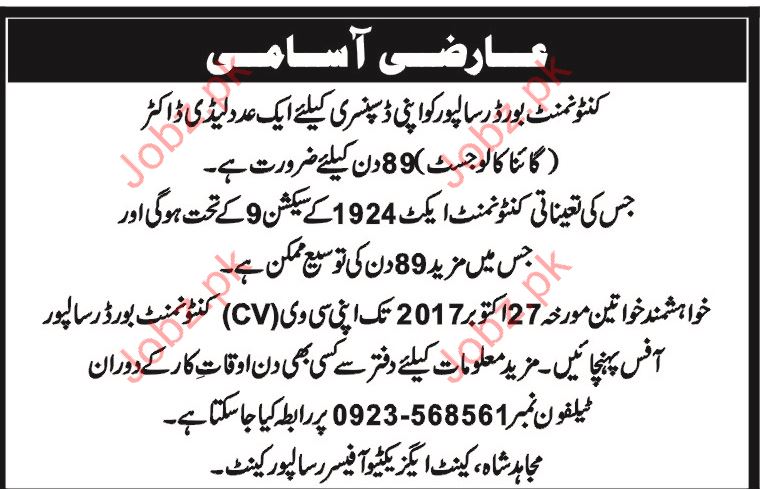 Latest Cantonment Board Medical Posts Risalpur 2025