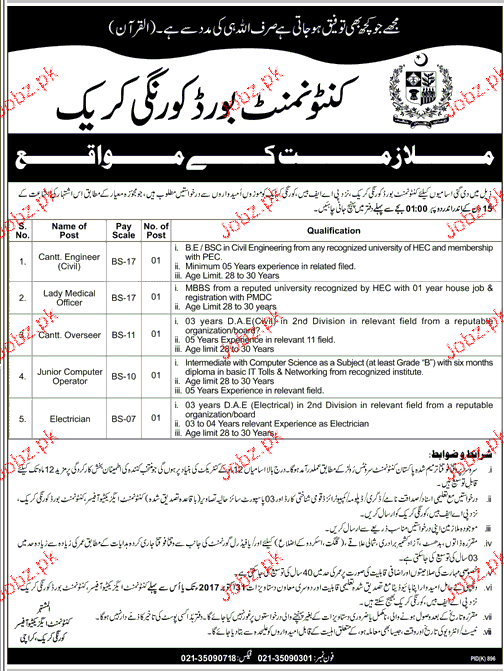 Latest Cantonment Board Engineering Posts Karachi 2025