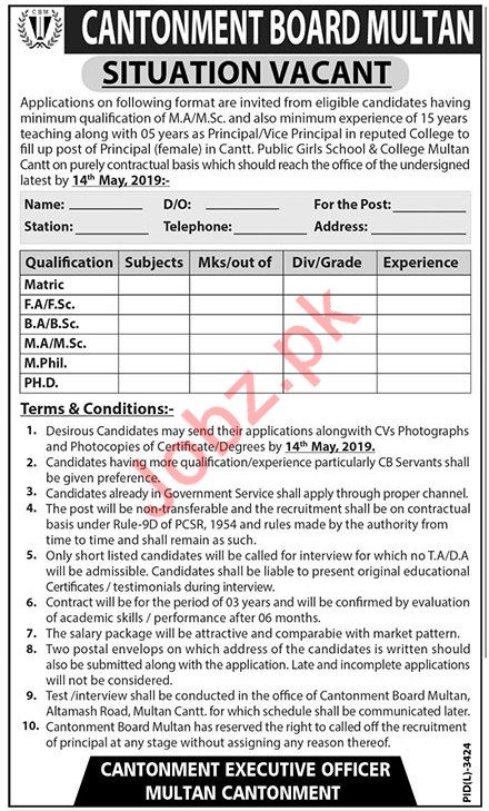 Latest Cantt Public School and Girls College Education Posts Multan 2025