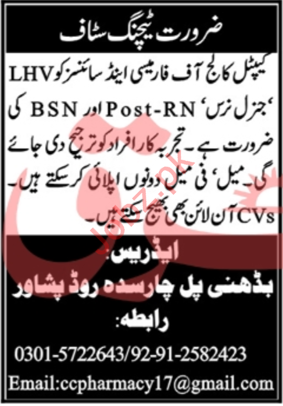 Capital College Of Pharmacy & Sciences Jobs 2020 For Nurse