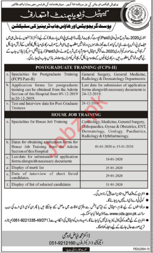 Latest Capital Development Authority CDA Medical Posts Islamabad 2025
