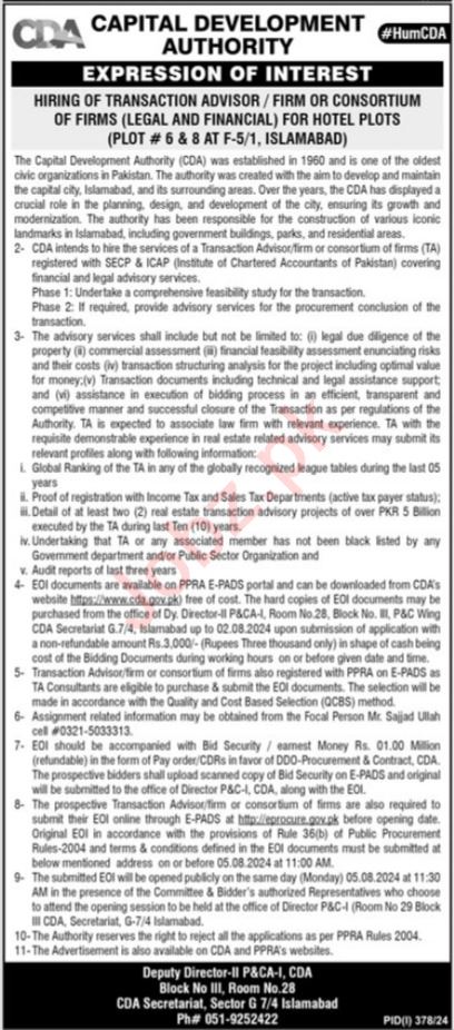 Vacancies in Capital Development Authority CDA Advertisement July 2024