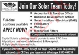 Capital Solar Engineering CSE invites applications for job positions advertised in daily Jang dated 13 May 2024 for following vacancies in Rawalpindi, rawalpindi Punjab Pakistan.