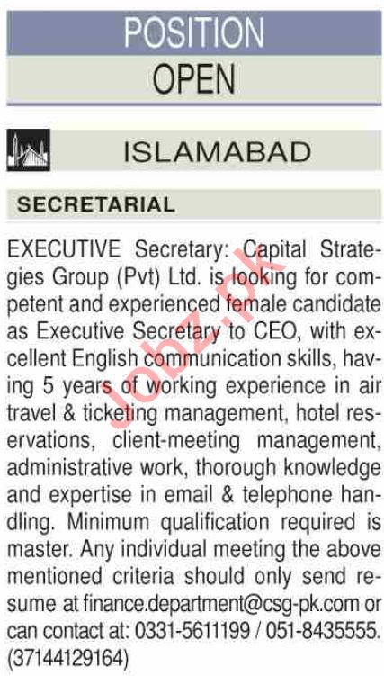Latest Capital Strategies Group Secretarial Posts Islamabad 2025