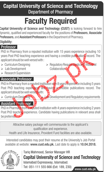 Latest Capital University of Science & Technology Teaching Posts Islamabad 2025