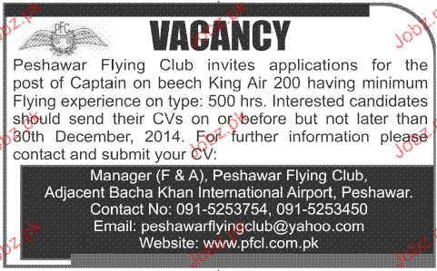 Apply as per details in job advertisement. Login to view further details of how to apply via https://www.jobz.pk online.