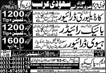 M Pak Makkah Manpower Services is looking for candidates for following posts as per job advertisement published in daily Express Newspaper of December 28, 2024 for location Riyadh, riyadh Saudi Arabia: