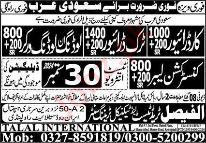 Latest Talal International Overseas Employment Promoters Labor Posts Riyadh 2025