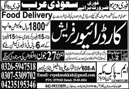M Pak Makkah Manpower Services latest Overseas Driving jobs and others can be applied till June 27, 2024 or as per closing date in newspaper ad. Read complete ad online to know how to apply on latest M Pak Makkah Manpower Services job opportunities. Learn today extra skills including Car Driving and Driving to get these M Pak Makkah Manpower Services jobs. Salary varies from 132000. Earn extra money with overtime. On job accommodation, transport and medical facility is provided.