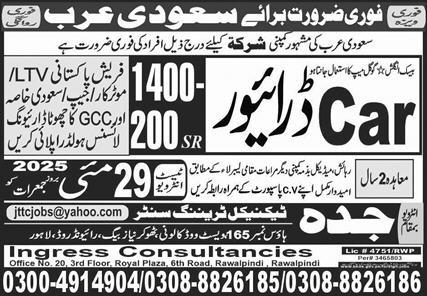 Apply at Jeddah Technical Trade Center latest Overseas jobs in Driving and departments before closing date which is around May 29, 2025 or as per closing date in newspaper ad. Read complete ad online to know how to apply on latest Jeddah Technical Trade Center job opportunities. Salary varies from 120000.