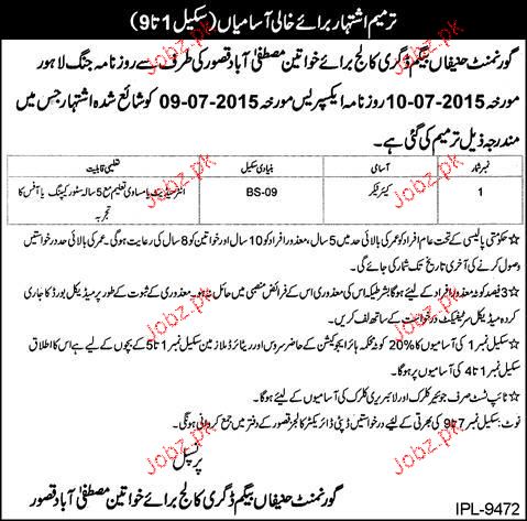Apply as per details in job advertisement. Login to view further details of how to apply via https://www.jobz.pk online.