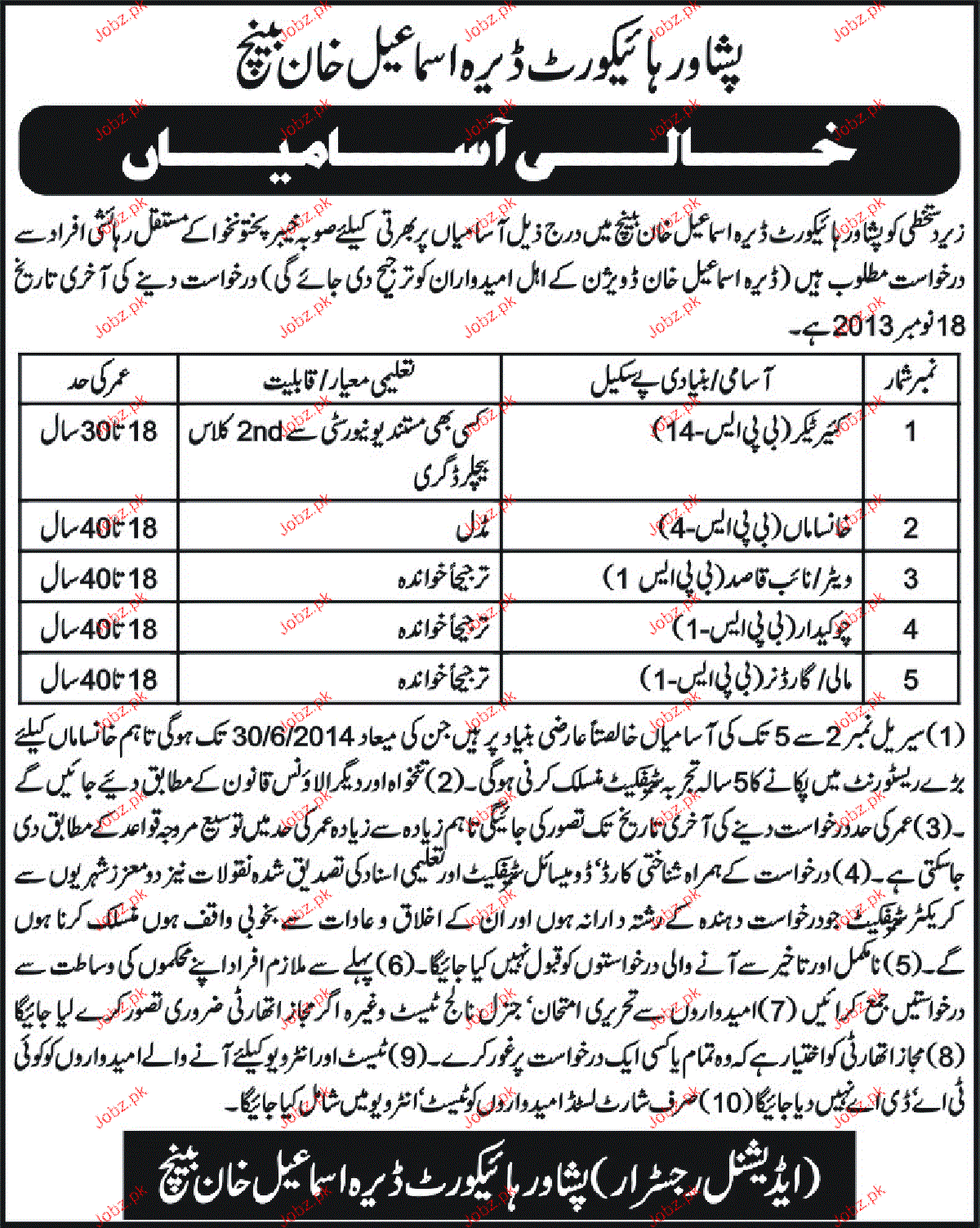 Care Takers, Cook, Waiters Jobs In Peshawar High Court