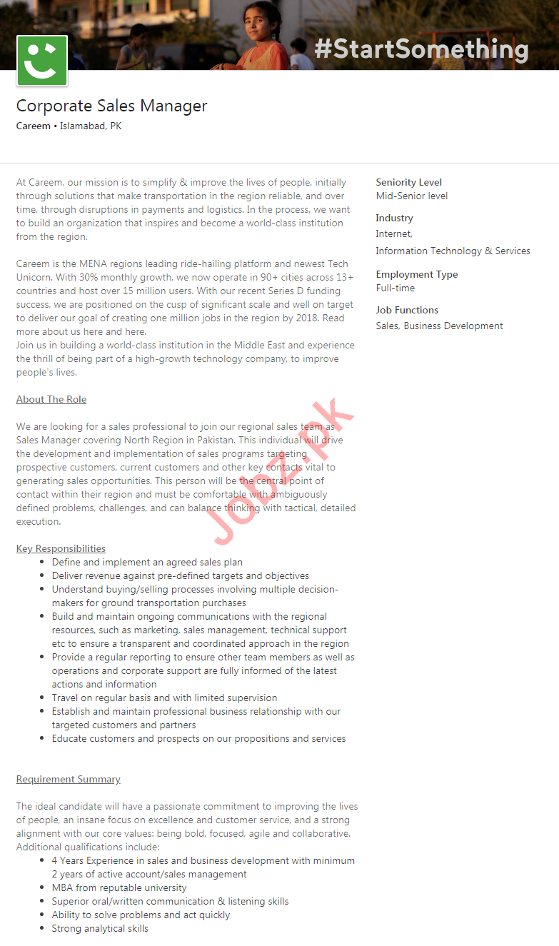 Careem Pakistan Jobs 2020 For Corporate Sales Manager
