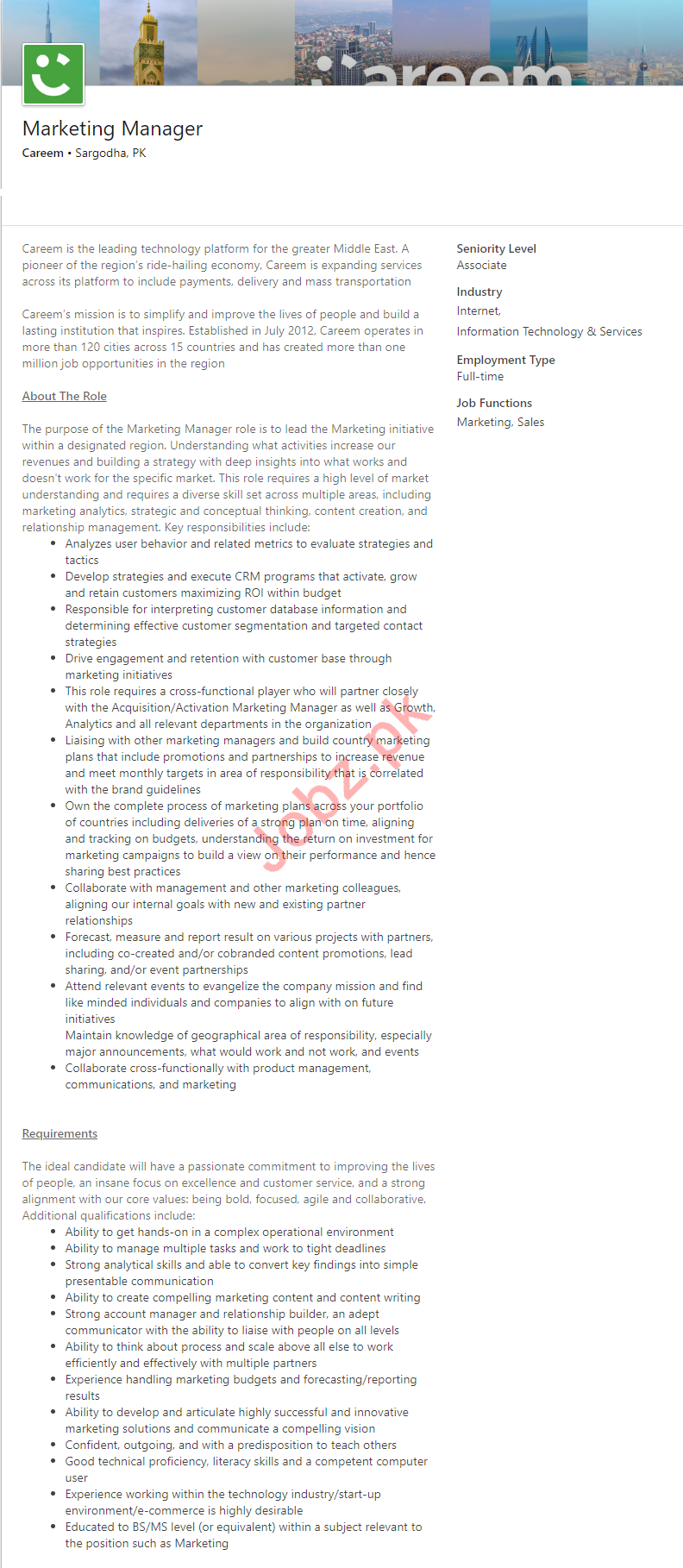 Careem Taxi Sargodha Jobs For Marketing Manager
