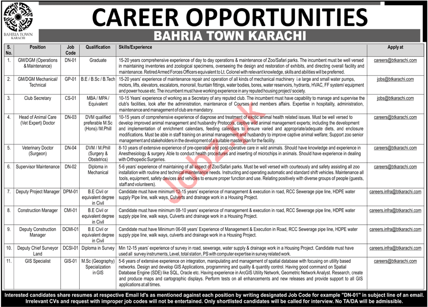 Apply as per details in job advertisement. Login to view further details of how to apply via https://www.jobz.pk online.