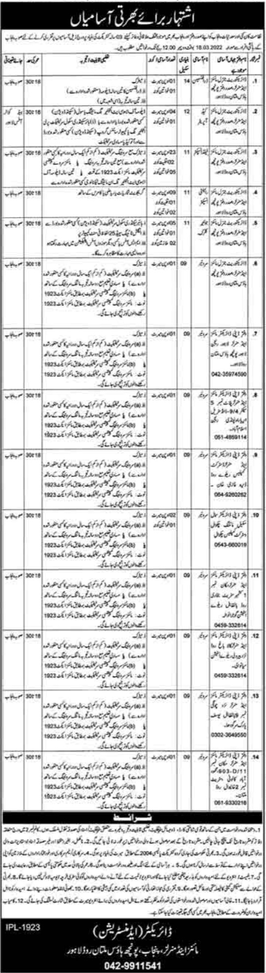 Educational qualifications required B.E, Matric, B.com, Intermediate, DAE and Others etc.