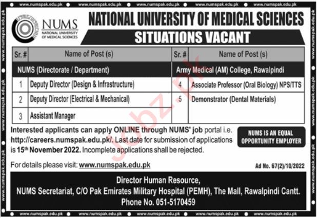 Latest Education jobs and others Government jobs in National University of Medical Sciences NUMS closing date is around November 15, 2022, see exact from ad. Read complete ad online to know how to apply on latest National University of Medical Sciences NUMS job opportunities.