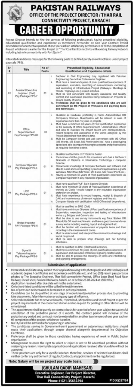 Pakistan Railways is looking for candidates for following posts as per job advertisement published in daily Jang Newspaper of August 7, 2024 for location Karachi, karachi Sindh Pakistan: