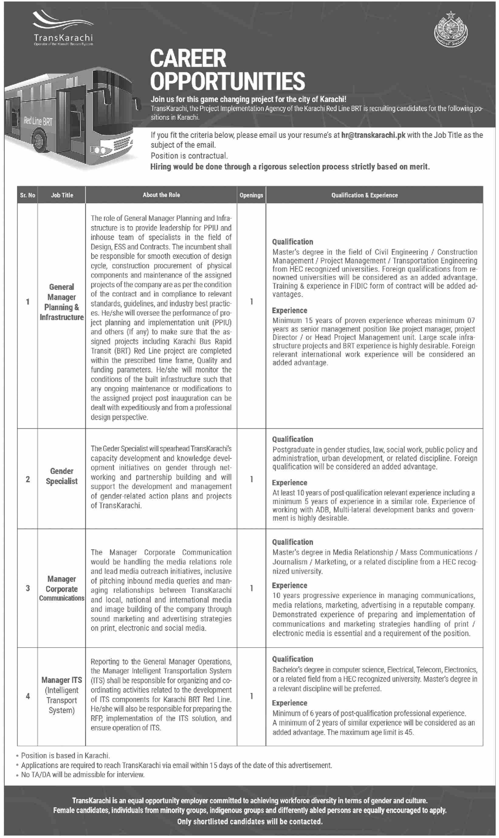 Transkarachi invites applications for job positions advertised in daily Dawn dated 24 January 2024 for following vacancies in Karachi, karachi Sindh Pakistan.