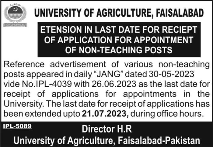 Apply at University of Agriculture UAF latest Government jobs in and departments before closing date which is around July 21, 2023 or as per closing date in newspaper ad. Read complete ad online to know how to apply on latest University of Agriculture UAF job opportunities.