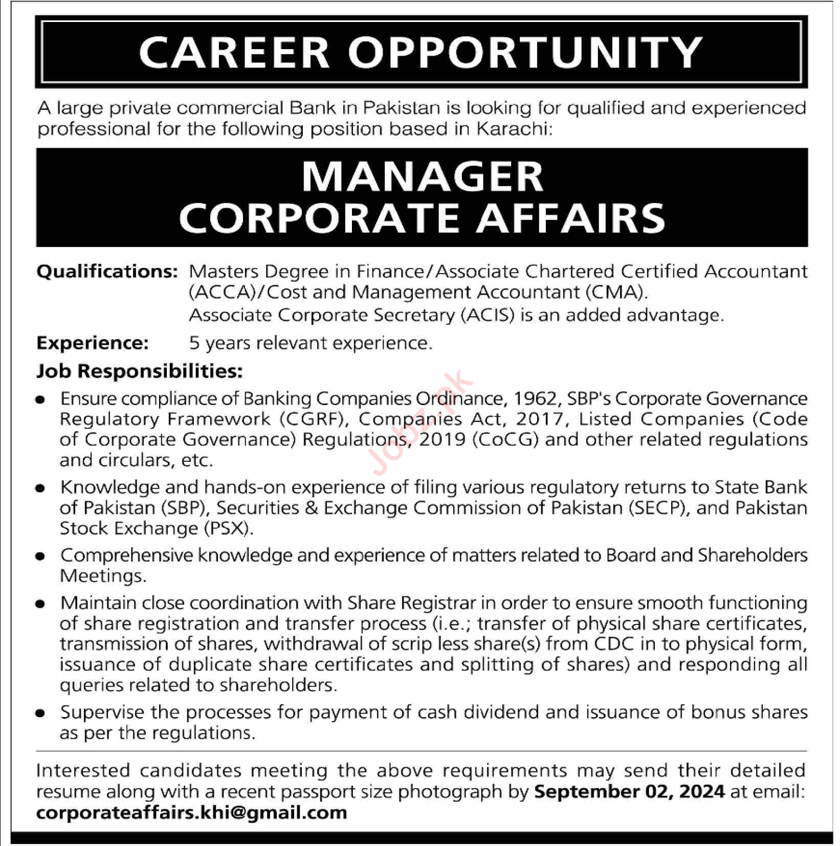 Latest Private jobs in Commercial Bank in Management and others can be applied till 2 September 2024 or as per closing date in newspaper ad. Read complete ad online to know how to apply on latest Commercial Bank job opportunities.