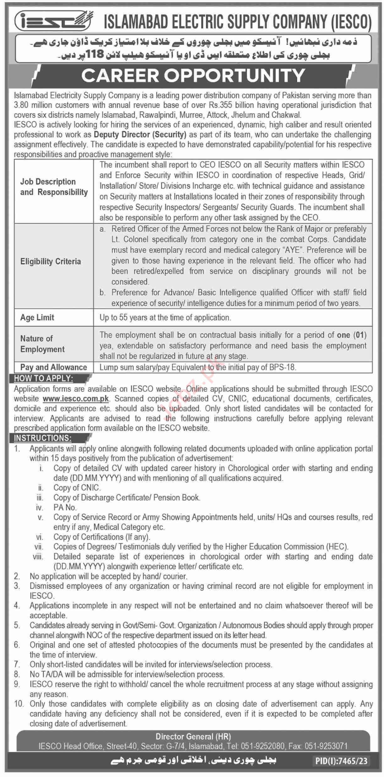 How to Apply on Islamabad Electric Supply Company IESCO Job Advertisement