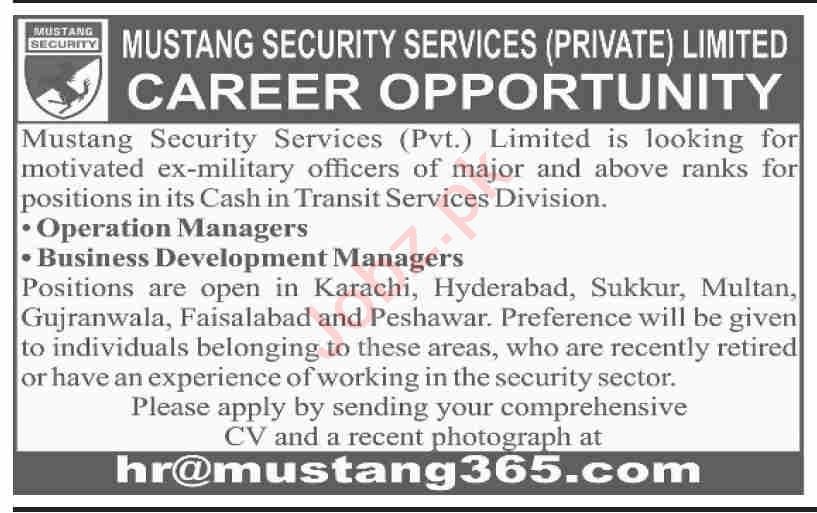 Mustang Security Services Pvt Ltd is looking for candidates for following posts as per job advertisement published in daily Dawn Newspaper of December 24, 2023 for location Karachi, gujranwala, sukkur, faisalabad, hyderabad, karachi, multan and peshawar Sindh Pakistan: