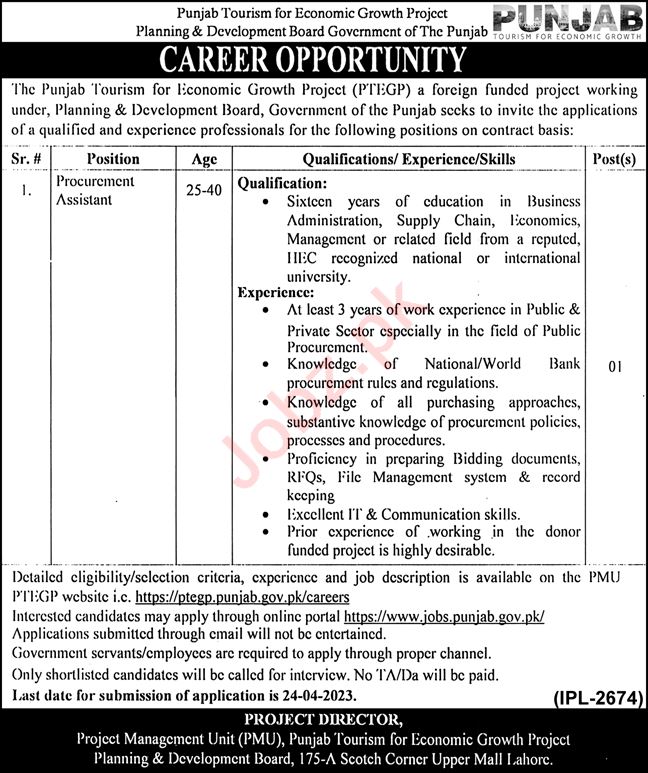 Planning & Development Board invites applications for job positions advertised in daily Nawaiwaqt dated 9 April 2023 for following vacancies in Lahore, lahore Punjab Pakistan.