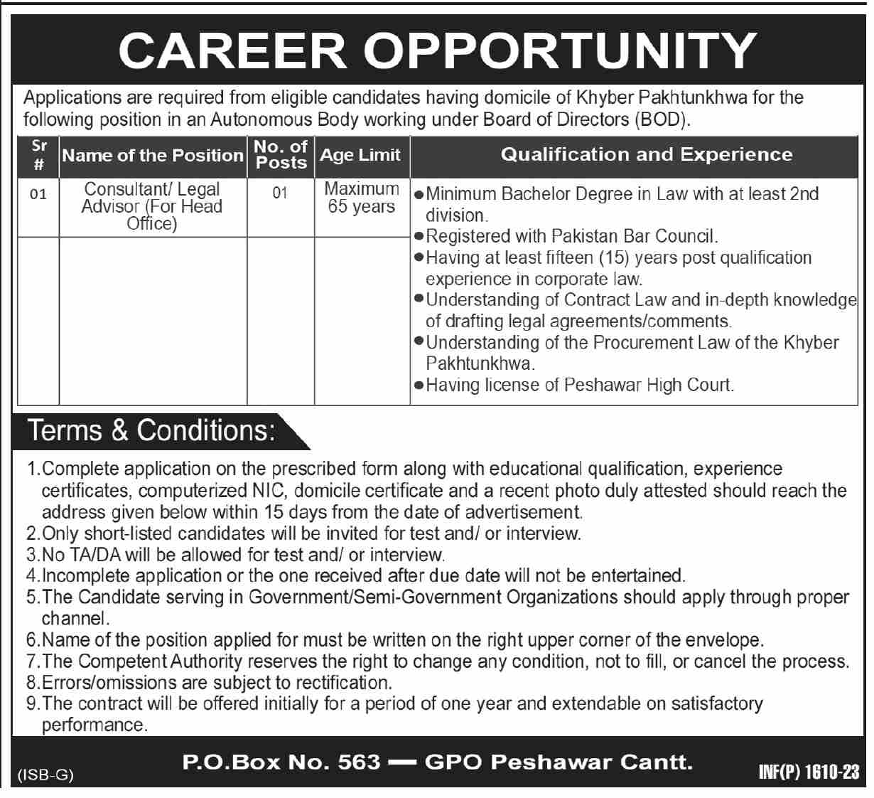 Latest Public Sector Organization Consultant Posts Peshawar 2025