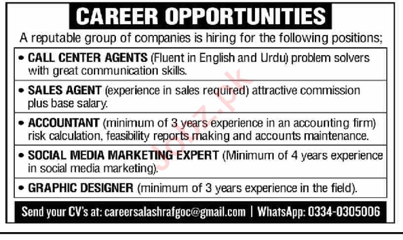 Vacant posts including accountant, call center agent, sales agent, graphic designer and social media marketing expert are announced in Private Company Karachi, karachi Sindh Pakistan as per 17 October 2022 advertisement in daily Dawn Newspaper. Educational qualifications required Intermediate, Master, Bachelor and MS etc.