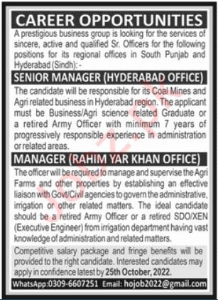 Vacant posts including manager are announced in Private Organization Hyderabad, hyderabad Sindh Pakistan as per 16 October 2022 advertisement in daily Jang Newspaper. Preferred Education is Master, Bachelor and MS etc.