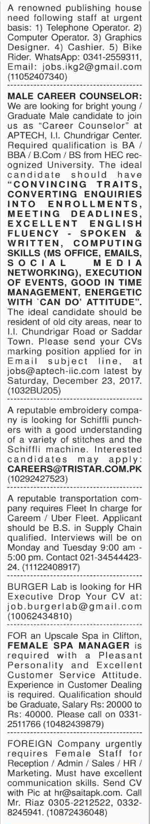 Apply as per details in job advertisement. Login to view further details of how to apply via https://www.jobz.pk online.