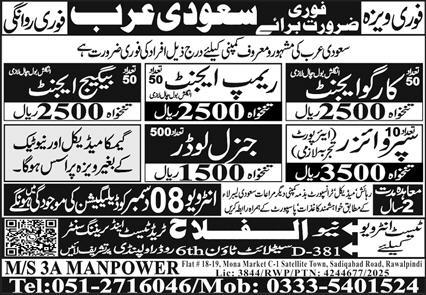 New Al Falah Trade Test & Training Center invites applications for job positions advertised in daily Express dated 4 December 2025 for following vacancies in Riyadh, taif Saudi Arabia.